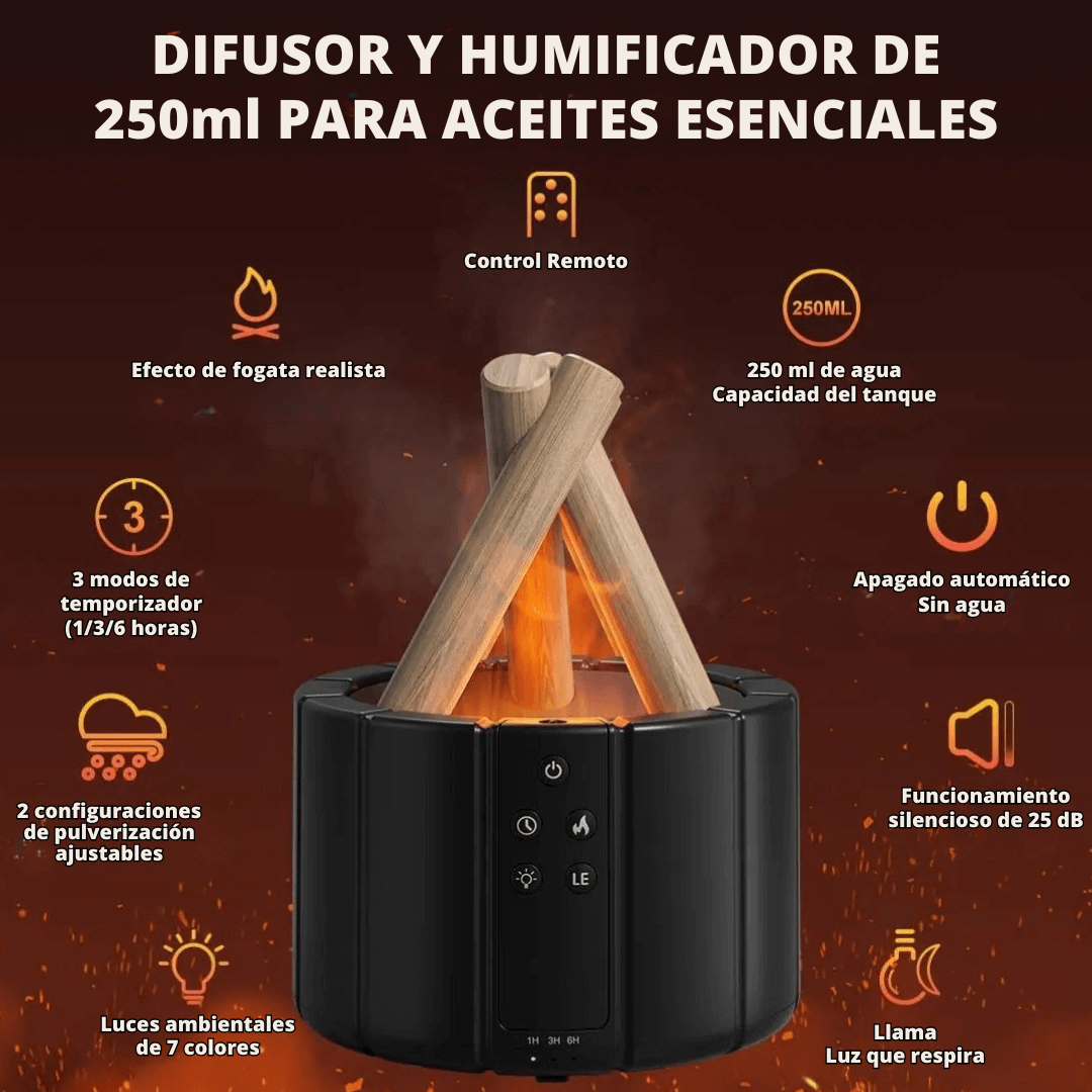 Con el Humidificador y Difusor de Aromas en Forma de Fogata, podrás transformar cualquier ambiente frío o estresante en un rincón de bienestar, relajación y estilo