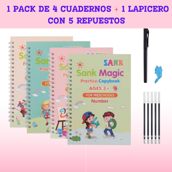 SET CUADERNO MAGICO ( 4 CUADERNOS + 1 LAPICERO MAGICO)
